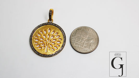 14k Gold Tree Of Hope Pendant Designer Rosecut Pave Diamond Pendant 925 Sterling Silver Handmade Finish Diamond Charms Necklace Pendant