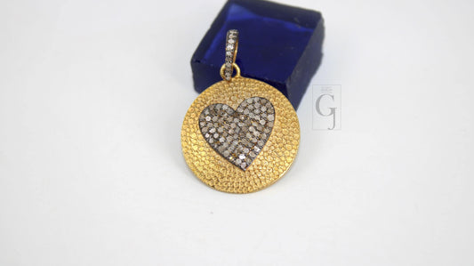 14k Vermeil Gold Heart Pendant Designer Rosecut Pave Diamond Pendant Sterling 925 Silver Handmade Finish Diamond Charms Necklace Pendant