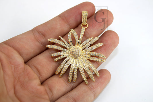 14k Gold Vermeil Lily Pendant Designer Rosecut Pave Diamond Pendant Sterling 925 Silver Handmade Finish Diamond Charms Necklace Pendant