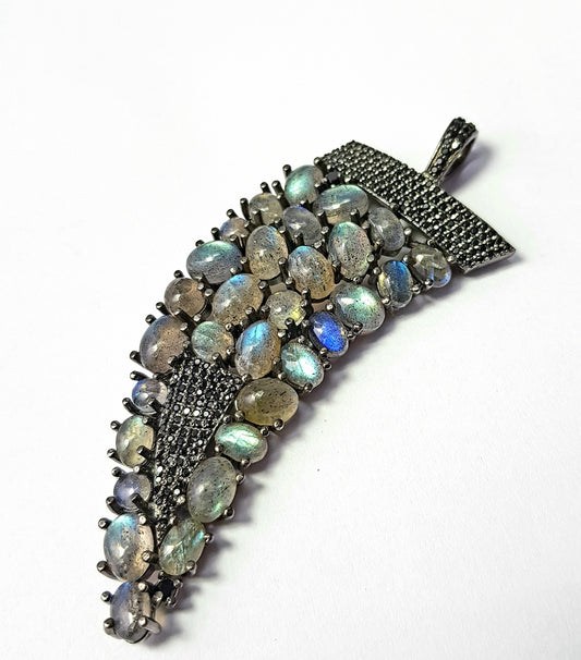 Pave diamond rosecut pendant 925 sterling silver pendant handmade diamond pendantBeautiful pavesetting tusk with labro stone diamond pendant