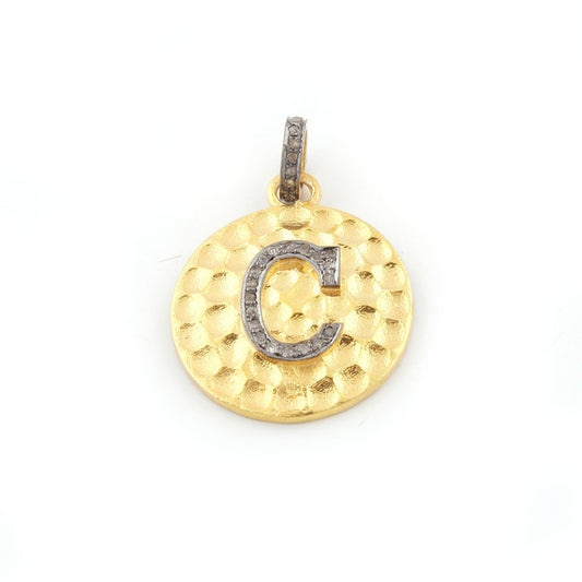 Pave diamond rosecut pendant 925 sterling silver pendant handmade pendant Initial Letter "A,B,C,D,E,F,G and may more" Round Shape Pendant