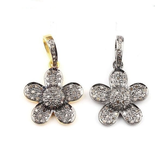 Pave Diamond Rosecut Pendant 925 Sterling Silver Pendant Handmade Diamond Pendant Very Beautiful Diamond Sun Flower Charm Diamond Pendant