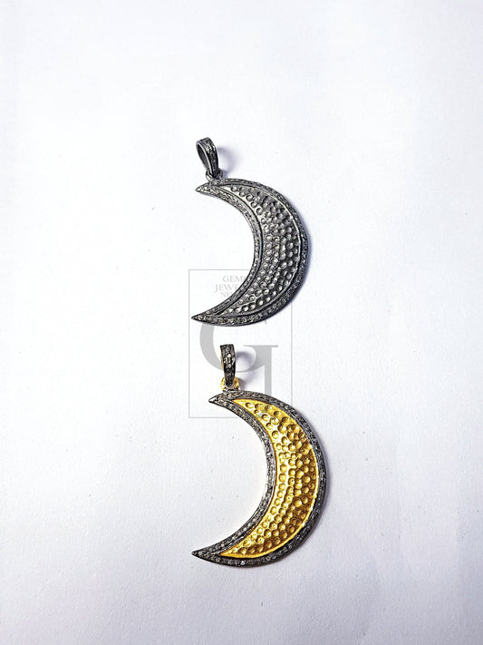 Pave diamond rosecut pendant 925 sterling silver pendant handmade diamond pendant very beautiful moon design pave diamond pendant