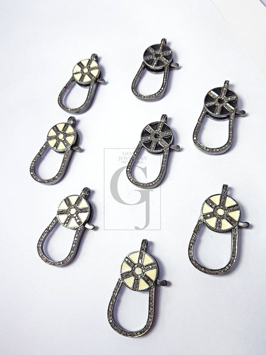 Pave rosecut diamond 925 sterling silver handmade beautiful enameling colored long pave diamond lobster clasp