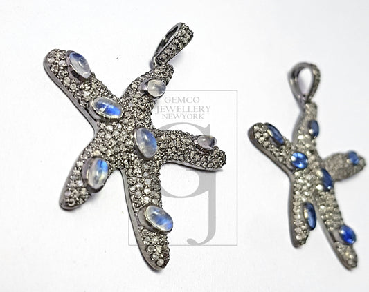 Pave diamond rosecut pendant 925 sterling silver pendant handmade diamondpendant pave diamond star design pendant with beautiful color stone