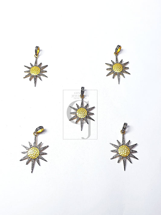 Pave diamond rosecut pendant 925 sterling silver pendant handmade diamond pendant very beautiful sunburst design paved diamond charm pendant