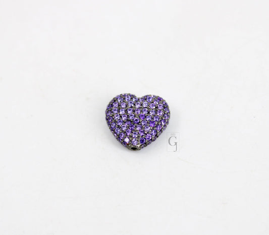 Pave Gemstone Heart Beads / Spacers Design Pave 925 Sterling Silver Handmade Jewelry Gemstone Jewelry Fine Jewelry Making Supplies 12mm Size