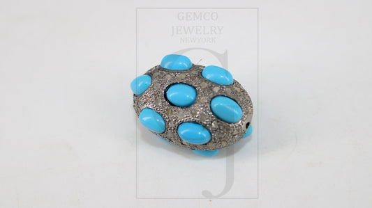 Pave Diamond Turquoise Bead / Spacers Design Pave Diamond 925 Sterling Silver Handmade Jewelry Diamond Jewelry Fine Supplies 17mm