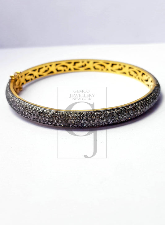 Rocecut Pave Diamond Bangle 925 Sterling Silver Handmade Finish Diamond Bangle