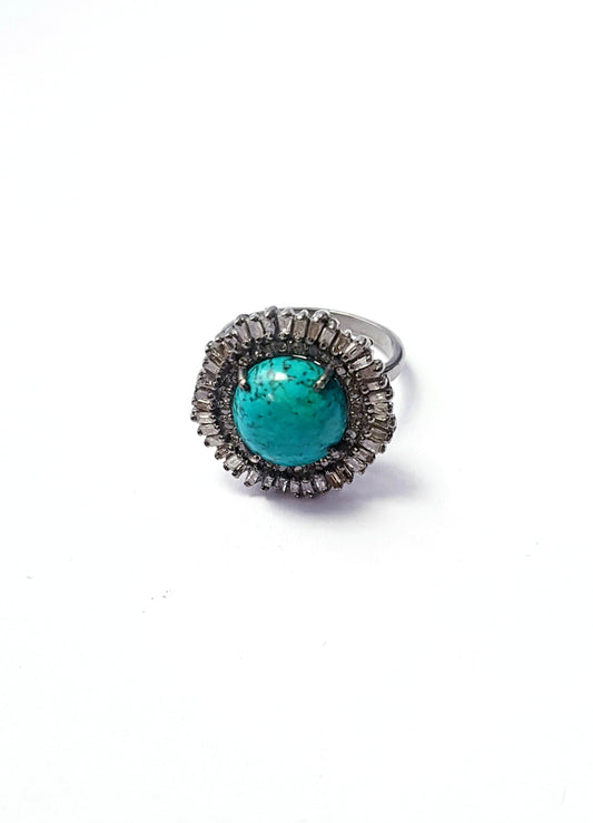 Rosecut pave diamond baguettes natural turqoise ring gemstone ring natural diamond gemstone ring sterling silver antique look oxidised ring