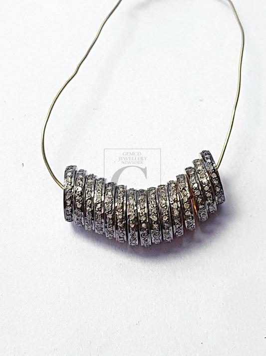 Set Of 10 Pave Diamond Rondelles / Bead Line Diamond Design Pave Rosecut Diamond 925 Sterling Silver Handmade Spacers Sold As 10 Pcs,