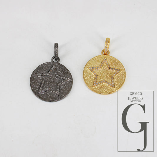 1PC Antique Finish Star Pendant Designer Rosecut Pave Diamond Pendant Sterling 925 Silver Handmade Finish Diamond Charms Necklace Pendant