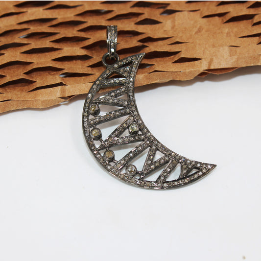 1pc Antique Finish Crescent Moon Design Pave Diamond Rosecut Pendant 925 Sterling Silver Pendant Handmade Diamond Pendant Jewelry