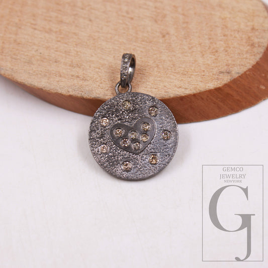 1pc Antique Finish Diamond Heart Pendant Brilliantcut Diamond Pendant 925 Sterling Silver Handmade Finish Diamond Charms Necklace Pendant