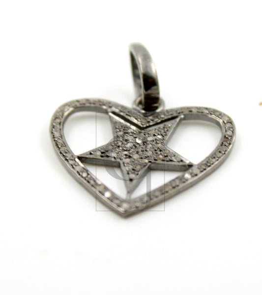Very beautiful love heart star design pendant Rosecut pave diamond 925 sterling silver handmade finish diamond jewelry necklace pendant