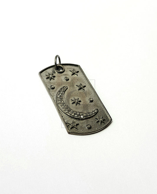 Very beautiful moon star designer Rosecut pave diamond pendant 925 sterling silver handmade finish diamond jewelry pendant dogtag shaped