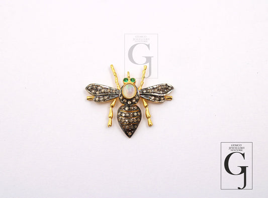 Very beautiful opal designer bee pendant Rosecut pave diamond pendant 925 sterling silver handmade finish diamond jewelry necklace pendant