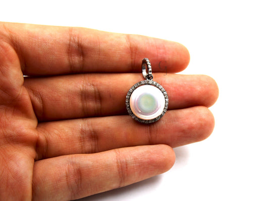 Very Beautiful Natural Pearl Pendant Rosecut Pave Diamond Pendant 925 Sterling Silver Handmade Finish Diamond Charms Necklace Pendant