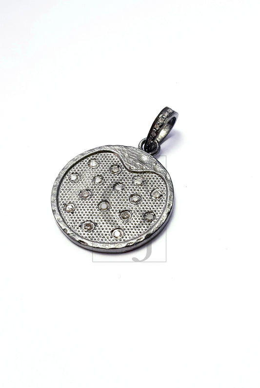Very beautiful round textured rose cut pave diamond pendant 925 sterling silver handmade stylish diamond coin pendant jewelry ready to ship