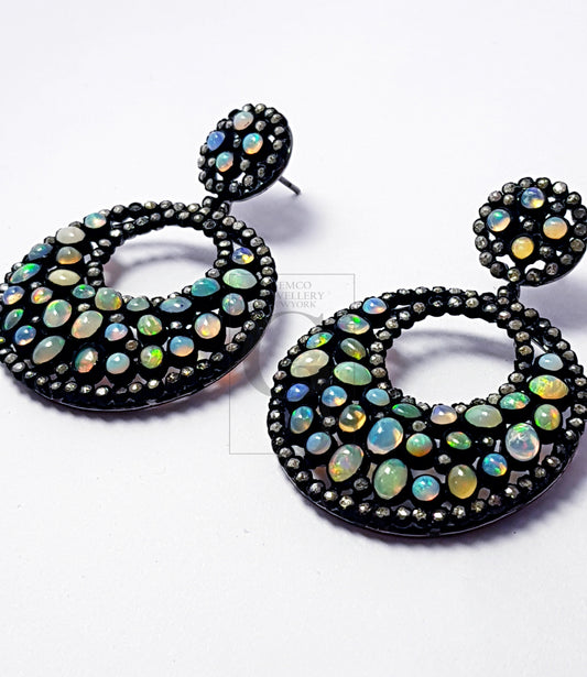 Very beautiful round shaped opal design Pave diamond earring sterling silver earring pave diamond silver earring 925 sterling opal earring