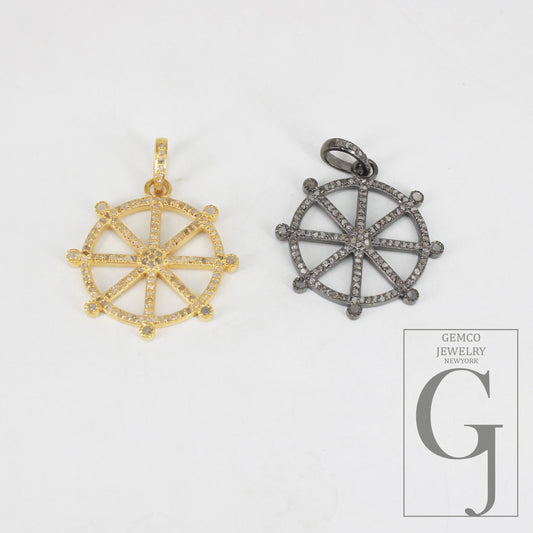 Very beautiful ship wheel designer pendant Rosecut pave diamond pendant 925 sterling silver handmade finish diamond charms necklace pendant