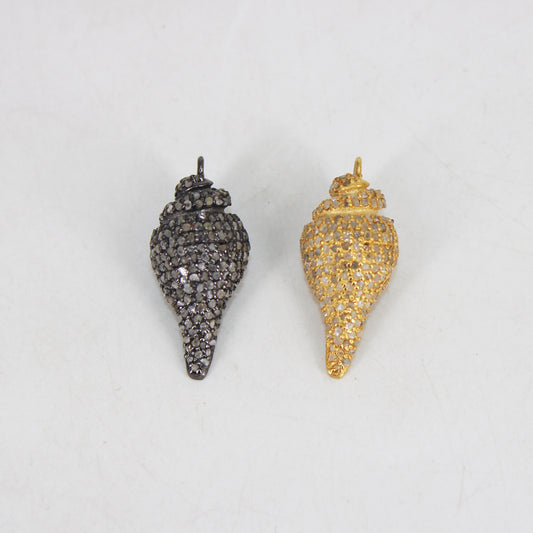 Very Beautiful seashell designer Rosecut full pave diamond pendant 925 sterling silver handmade finish diamond charms necklace pendant