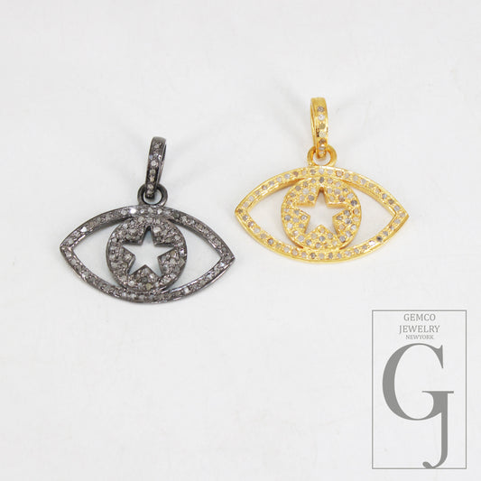 Very beautiful star eye designer pendant Rosecut pave diamond pendant 925 sterling silver handmade finish diamond charms necklace pendant