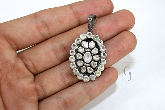 1pc Antique Polki Pendant Diamond Designer Rosecut Pave Diamond Pendant 925 Sterling Silver Handmade Finish Diamond Jewelry Necklace Pendant