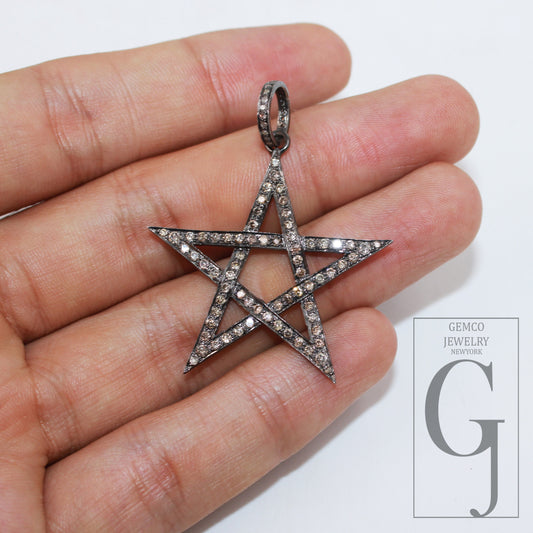 1pc Antique Star Pendant Designer Rosecut Pave Diamond Pendant Sterling 925 Silver Handmade Finish Diamond Charm Necklace Pendant Jewelry