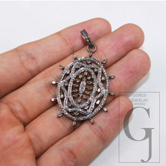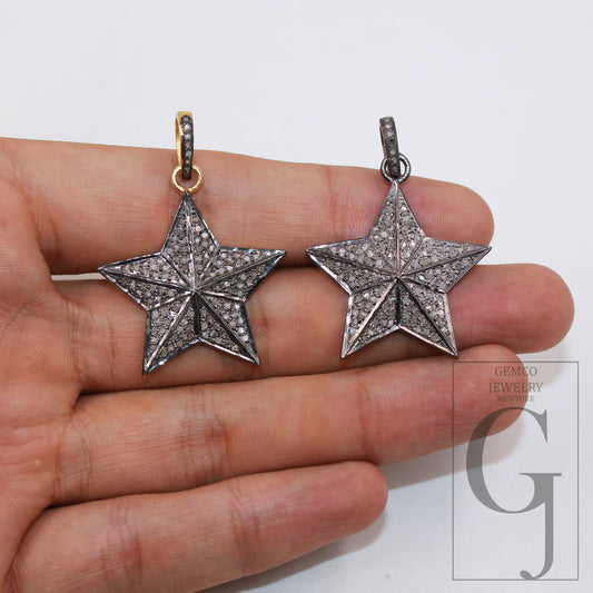 1pc Antique Look Star Design Brilliant Cut Diamond Pave Pendant 925 Sterling Silver Handmade Finish Diamond Pendant Jewelry Charm