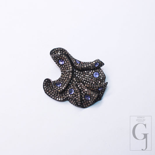 Antique Flower Design Tanzanite Pendant – Handmade 925 Sterling Silver with Pave Rosecut Diamonds, Vintage-Inspired Jewelry