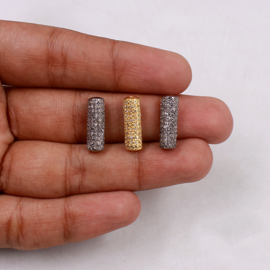 Handmade Pave Diamond Pipe Beads in 925 Sterling Silver | Luxury Spacer Beads for Necklaces, Bracelets & Fine Jewelry Creations