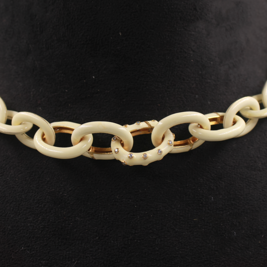 One of a Kind Ivory Enamel Brass Necklace with Lab Grown Diamonds | Handmade Jewelry in Custom Colors – Perfect Gift for Luxury & Everyday Wear