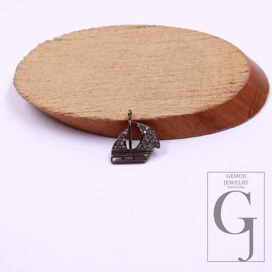 Designer Boat Pendant With Rosecut Pave Diamonds In 925 Sterling Silver - Handmade Jewelry Gift For Her
