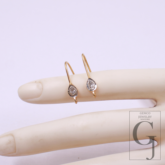Designer Diamond Earring Hooks – Rosecut Pave Diamond 925 Sterling Silver Handmade | Earring Jewelry Making Supplies