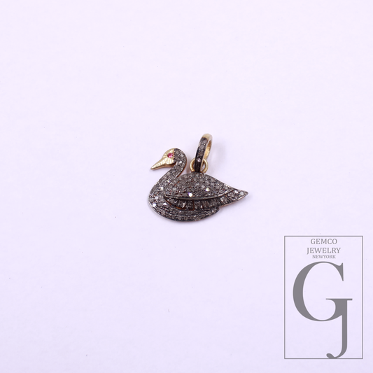 Beautiful Duck Pendant With Rosecut Pave Diamonds Vermeil Gold In 925 Sterling Silver, Handmade Pendant Gift For Her