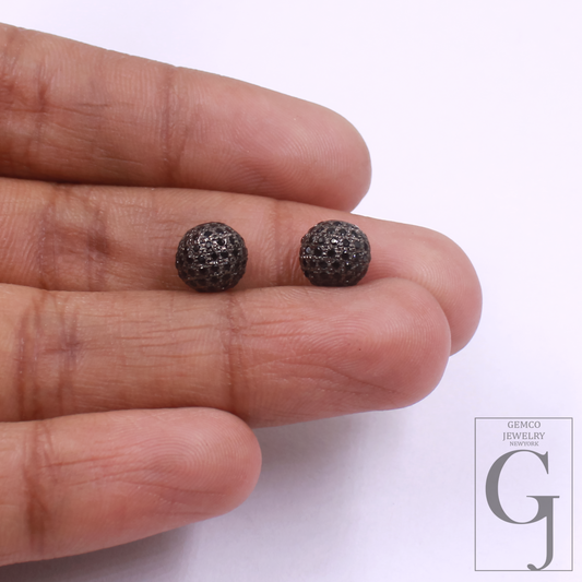 Beautiful Black Pave Diamond Ball Bead Spacer (6mm-12mm) In 925 Sterling Silver For Jewelry Supplies