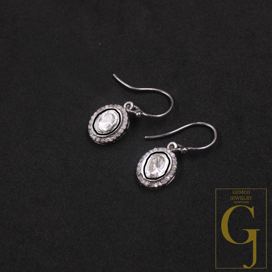 Slice Diamond, Polki Designer Studs Tops Earring Rosecut Pave Diamond Earrings 925 Sterling Silver Handmade Silver Finish Diamond Earring