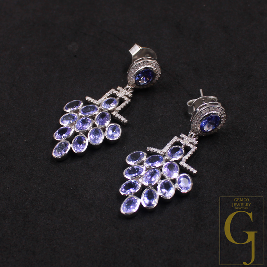 Natural Tanzanite Earring With Pave Diamonds In 925 Sterling Silver Handmade Earring With Natural Gemstone