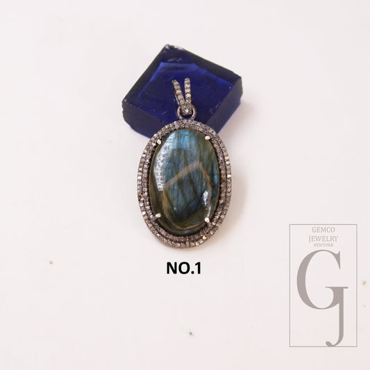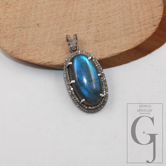 1pc Beautiful Designer Labradorite Pendant Rosecut Pave Diamond Pendant 925 Sterling Silver Handmade Finish Diamond Charms Necklace Pendant