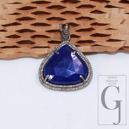 1pc Beautiful Designer Lapis Pendant Rosecut Pave Diamond Pendant 925 Sterling Silver Handmade Finish Diamond Charm Necklace Pendant Jewelry