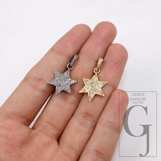 1pc Beautiful Designer Star Pendant Rosecut Pave Diamond Pendant 925 Sterling Silver Handmade Finish Diamond Charm Necklace Pendant Jewelry