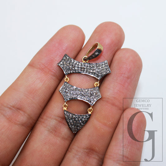 1pc Dangling Designer Pendant Rosecut Pave Diamond Pendant 925 Sterling Silver Handmade Finish Diamond Charms Necklace Pendant Jewelry