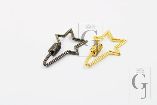 1 Pc 14k Gold Finish Pave Diamond Rock Star Design Rosecut Pave Diamond Screw Design Clasp 925 Sterling Silver Handmade Finish Diamond Clasp