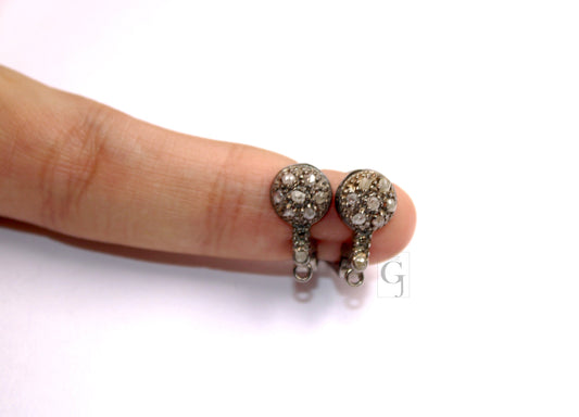 1 Pair Oxidized Pave Rosecut Diamond 925 Sterling Silver Handmade Pave Diamond Stud Earrings