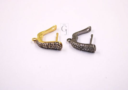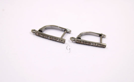 1 Pair Russian Lock Earring Hook Rosecut Pave Diamond Earring Supplies 925 Sterling Silver Handmade Silver Finish Diamond Earring 18mm Size