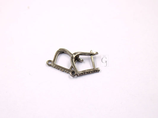 1 Pair Russian Lock Earring Hook Rosecut Pave Diamond Earring Supplies 925 Sterling Silver Handmade Silver Finish Diamond Earring 15mm Size