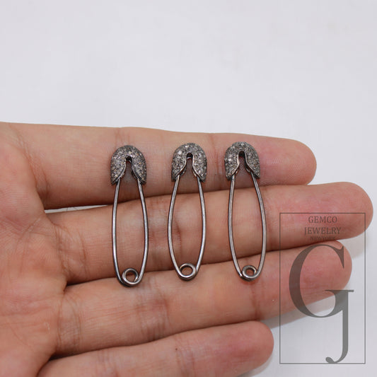 1 pcs Pave Diamond 925 Sterling Silver Handmade Rose Cut Pave Diamond Diamond Safety Pin Pendant Diamond Pendant Safety Pin Charms
