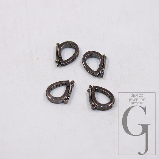 1pc Oval Oxidized / Vermail Gold Rosecut Pave Diamond Design Necklace Clasp 925 Sterling Silver Handmade Finish Diamond Pendant Clasp 20mm