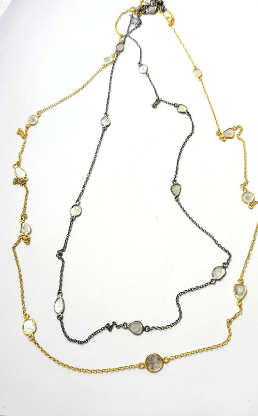 Antique Finish Oxidized And Vermail Gold 925 Sterling Silver Handmade Slice Polki Diamond Flat Diamond Paper Diamond Chains Necklace Chains